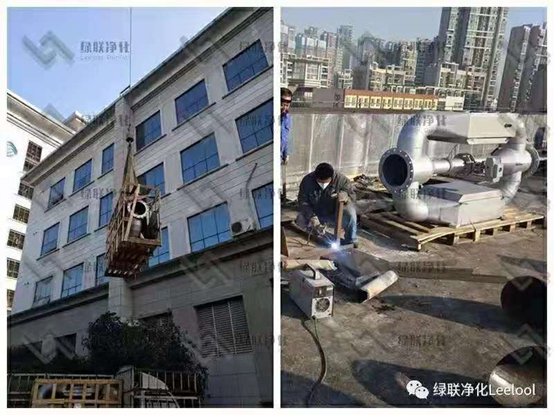 綠聯凈化L-DEZS型柴油機黑煙顆粒捕集器起吊安裝中