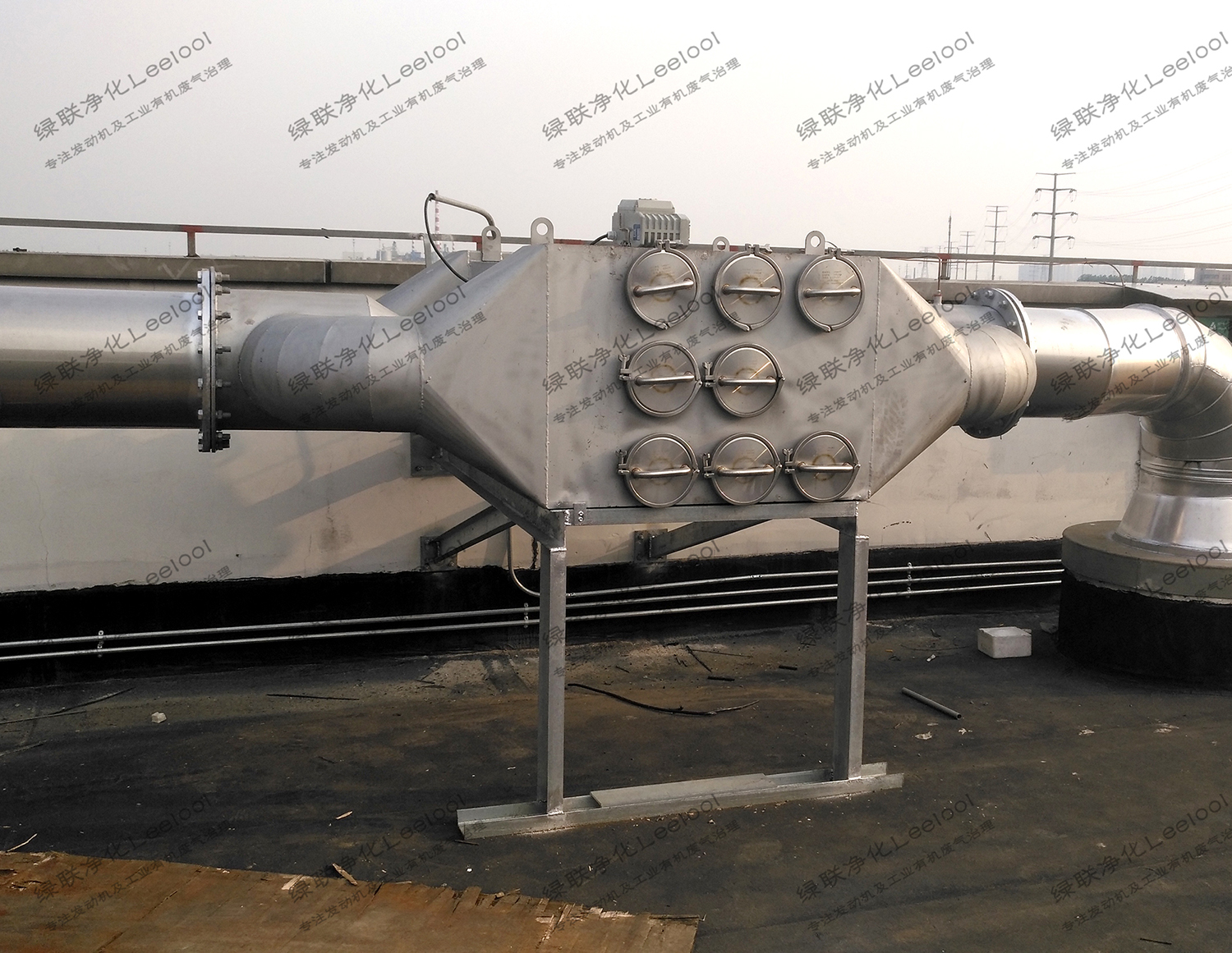 綠聯凈化L-DEZS系列重型柴油機尾氣干式顆粒物捕集器是由綠聯凈化技術(東莞)有限公司技術團隊采用國際先進的吸附及催化氧化工藝,潛心自主研發并擁有全部知識產權的新型柴油機尾氣處理裝置,屬于第三代柴油機黑煙凈化器。通過多組金屬DPF載體并聯組成柴油機尾氣顆粒捕捉器,采用卡扣固定可抽出單元式設計,當堵PM碳顆粒物塞造成高背壓時,由電子壓力傳感器感知壓力信號傳送給電控系統報警并打開旁通,可以靈活抽出過濾單元進行水洗再生,工作時不消耗任何能源。具有處理效率高、開機被壓小、堵塞時間長、再生清理方便快捷、直接吊裝安裝方便、全身采用不銹鋼使用壽命長、具有降噪功能、無電能損耗、自動旁通報警安全系數高等優點。